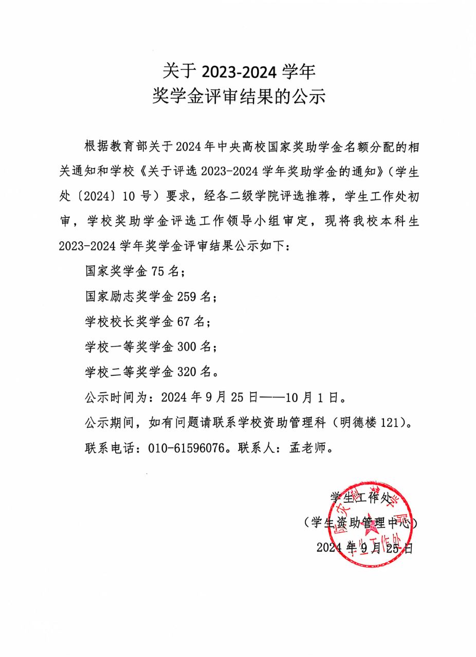 关于2022-2023学年防灾科技学院奖学金评审结果的公示